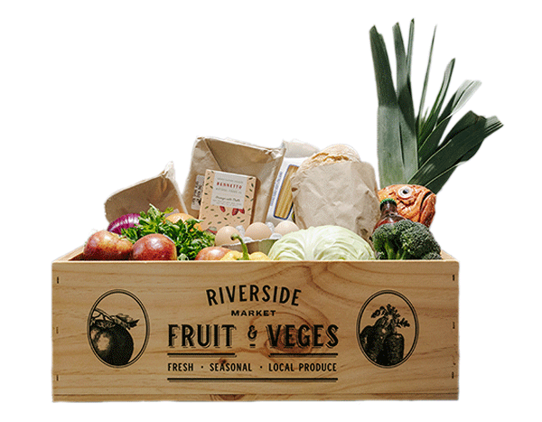 The Riverside Market Box for Two contains enough fresh, seasonal produce for two people: